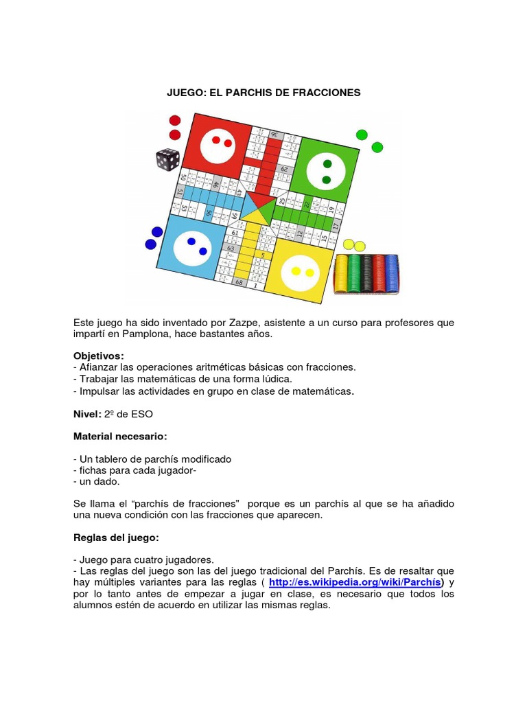 Para utilizar este recurso es necesario imprimir y plastificar cada tablero gramatical y jugar, en grupo, con dados y peones. Cumpleaños del alumnado, tanto para anotar en el cuaderno, como para imprimir y colgar en la clase. Fraseando, el juego para practicar los tiempos verbales. Abre chrome en tu ordenador. El parchís es un juego de mesa derivado del pachisi y similar al ludo, al parqués y al parcheesi.